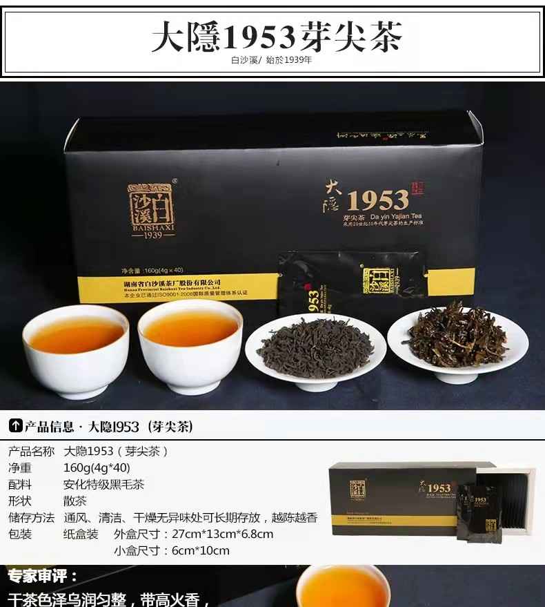 湖南安化黑茶正宗白沙溪正品散茶便攜大隱1953特級芽尖160g直泡黑茶