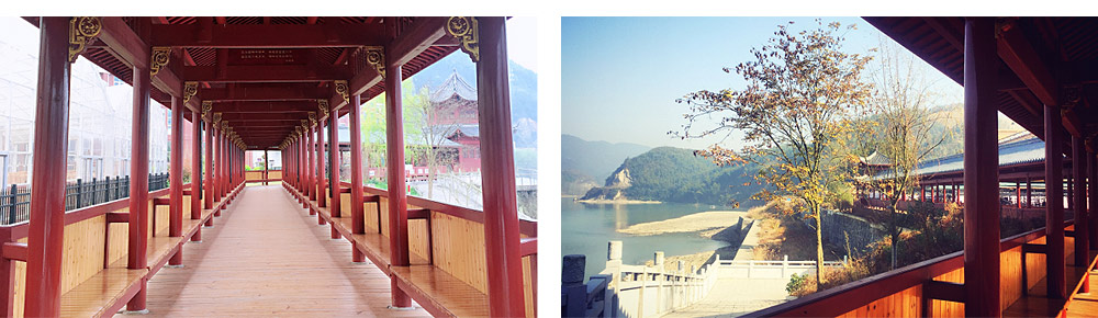 風(fēng)雨長廊宛若一尾長龍,盤踞在白沙溪廠房前,雕梁畫棟,紅漆黛瓦,傍晚時(shí)分,勞作了一天的員工們在此喝茶納涼,談笑風(fēng)生,孩子們?nèi)宄扇憾鬃陂L椅旁,聽長輩們講述著白沙溪八十載興衰更替、風(fēng)雨變遷。在這里,黑茶歷史和企業(yè)文化相纏交織,似故人從長廊那頭款款而來,一個(gè)微笑,一個(gè)眼神便足已慰藉心靈。