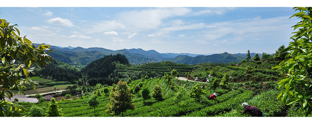 鈞澤源為白沙溪茶廠自建的有機(jī)茶園,身臨資江碧水,背靠巍峨高山,晨曦有薄霧環(huán)繞,堪比仙境。緊鄰陶澍園陵,透過裊娜云霧與白沙溪茶廠隔江相望。山地梯田式茶園順著山勢蜿蜒而上,一排排青翠的茶苗在這黛色山嵐上巍然成景,似千軍萬馬,昂首挺胸堅(jiān)定地守護(hù)著先祖根基,延續(xù)著黑茶文化的血脈與精魂。正所謂“頭頂一片天,身藏雪峰山??偠礁笤海瑫阏瑸閹p。臥看資江水,兩岸一肩擔(dān)?!?