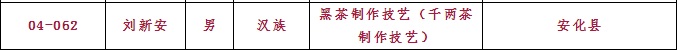 熱烈祝賀集團白沙溪茶廠總經理劉新安、常務副總經理肖益平、益陽茶廠質管部經理黃燕入選第四批省級非物質文化遺產代表性傳承人