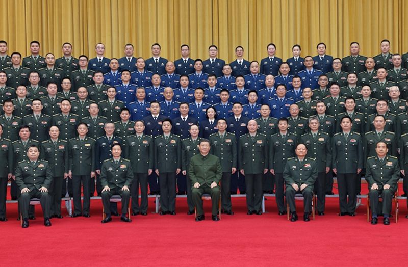 3月20日上午,習近平在長沙親切接見駐長沙部隊上校以上領導干部,代表黨中央和中央軍委向駐長沙部隊全體官兵致以誠摯問候,并同大家合影留念。張又俠陪同接見。