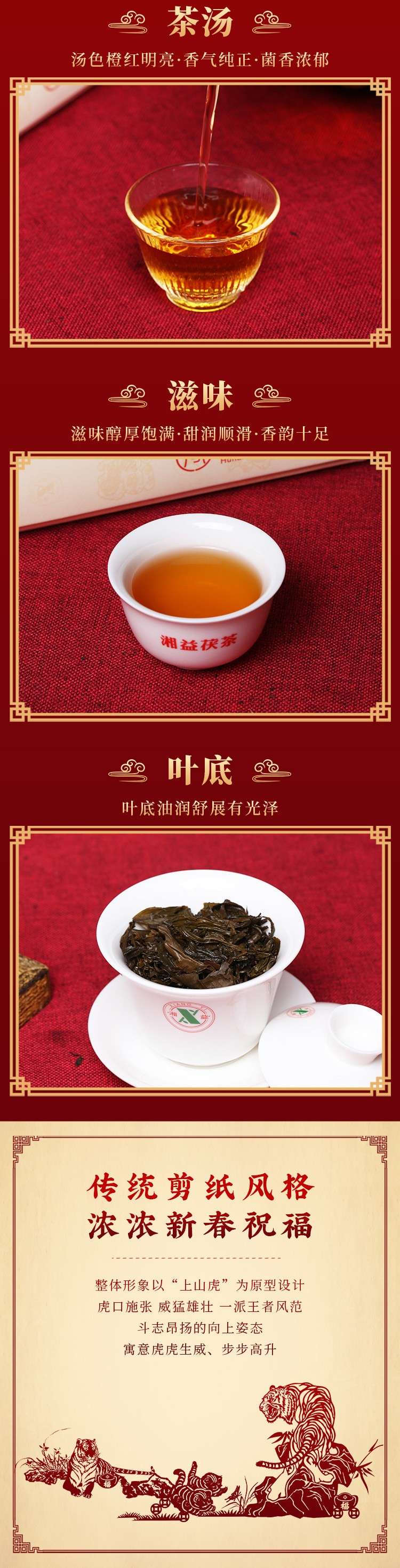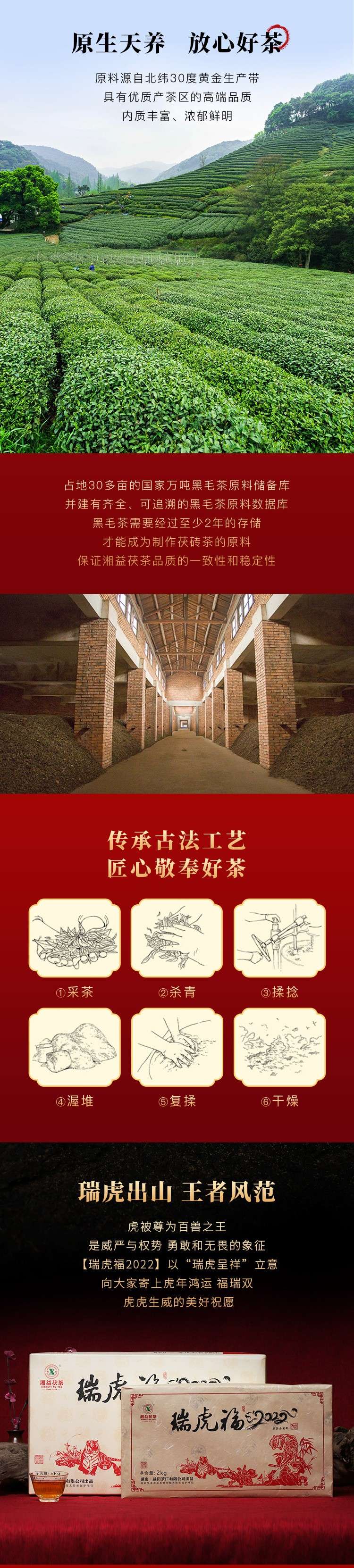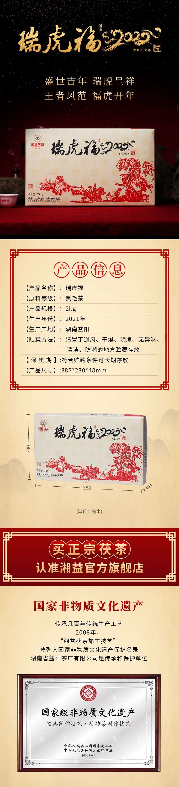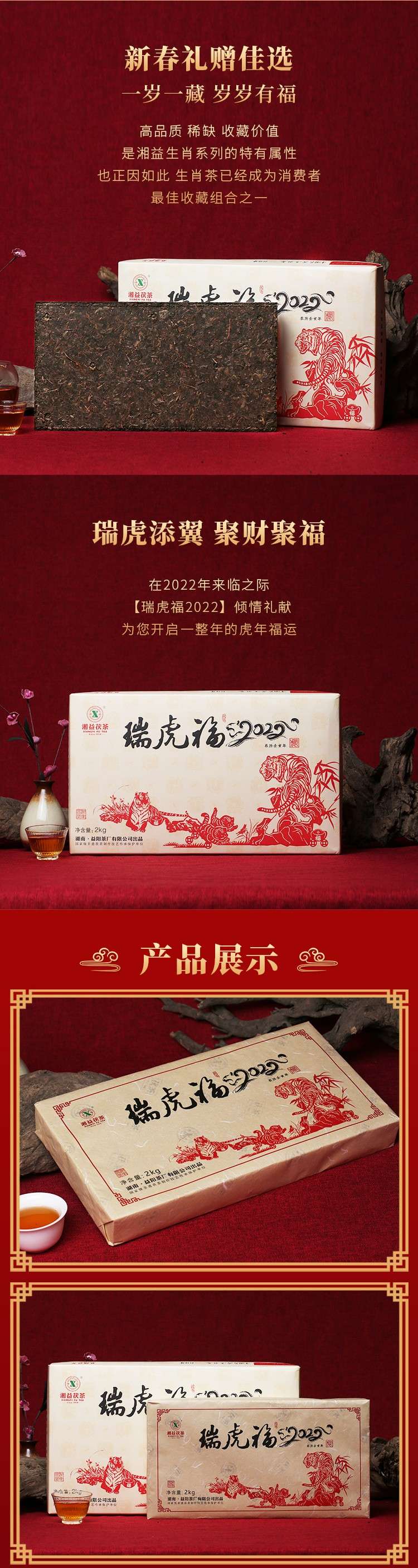 湘益獲茶湖南獲磚茶正宗安化黑茶2022新品虎年生肖茶瑞虎福2kg